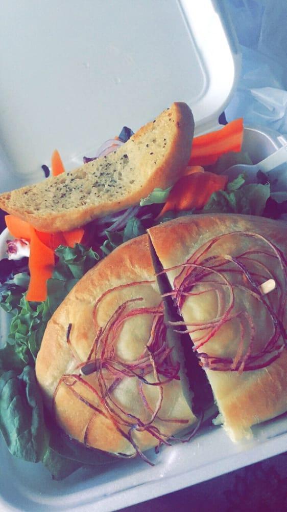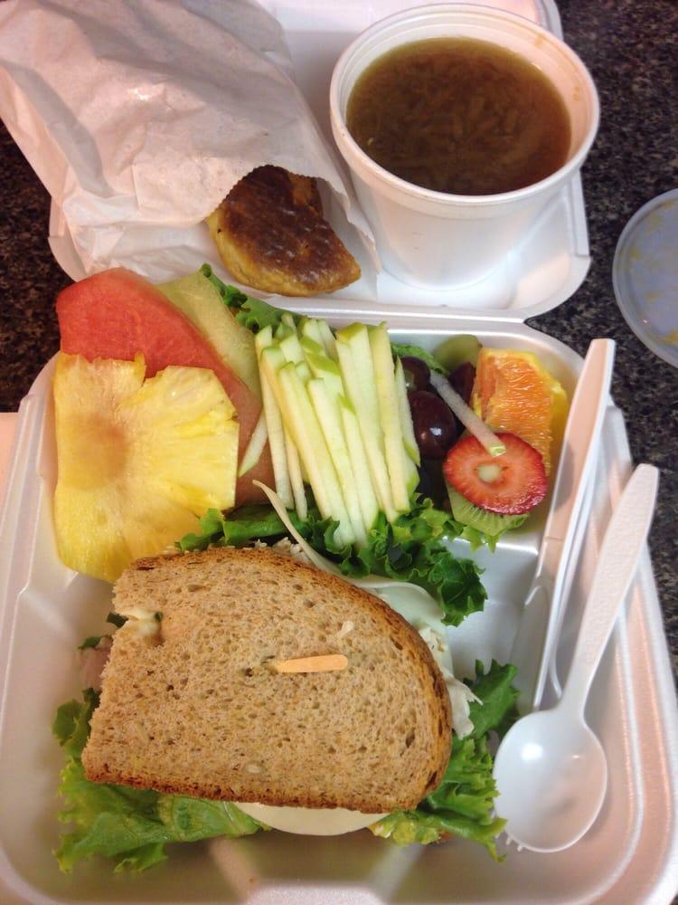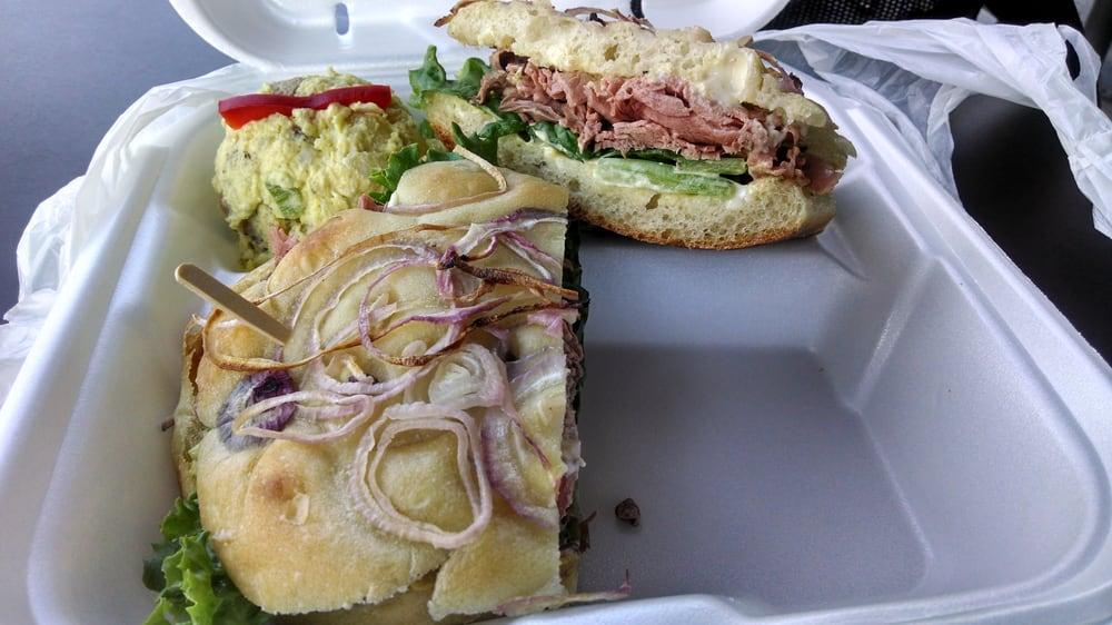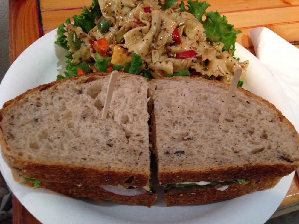 Delicious sandwiches and salads. They make everything from scratch including their bread, butter, pastries, soups, dressing....everything. They cook the turkey and chicken, no processed slices. The ambience and music are wonderful. But if you want Subway prices, go to Subway.